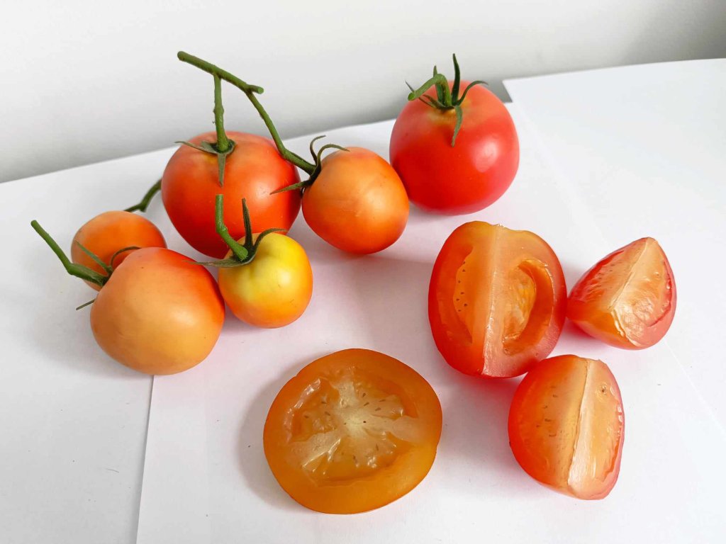 Robustní umělou zeleninu lze podávat v misce na ovoce, na porcelánovém talíři nebo jednoduše na kuchyňském prkénku. Dekorativní rajče můžete také jednoduše podávat s další zeleninou, ať už čerstvou nebo umělou, a zajistit si tak skvělou, středomořskou kuchyni. Tímto způsobem jsou plody rajčete obzvláště dobrou dekorací pro vystavení v oddělení zeleniny nebo pro výlohy.