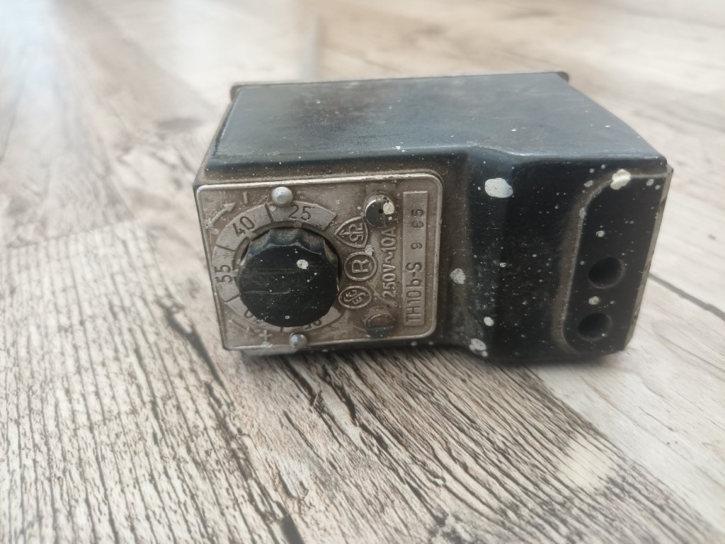 Metra TH 10 b-svelmi starý původní kouseknetestován, ale vypadá v pořádkuTermostaty se skládají ze dvou hlavních částí: teplotního čidla a spínací hlavice. Dilatační změny čidla se přenášejí prostřednictvím páky na spínač. K ochranné svorce musí být připojen ochranný vodič. Standardní provedení je opatřeno krytem svorek pro zabránění náhodného dotyku.