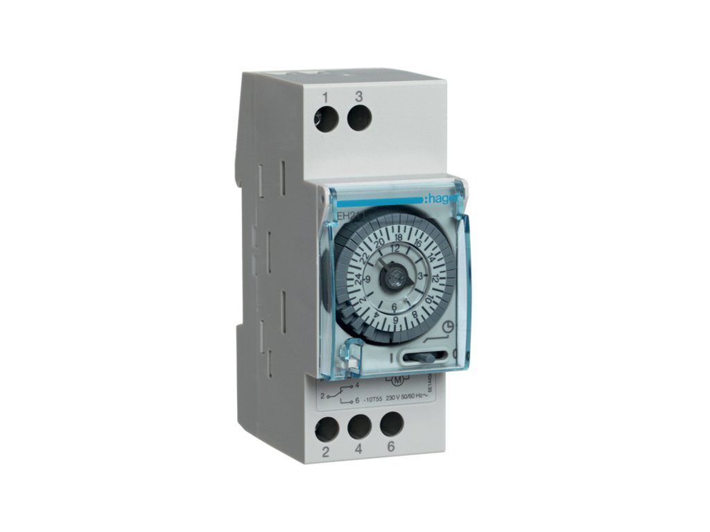 Mechanické spínací hodiny analog. na DIN lištu 1xpřep. (rezerva chodu 200h) HAGER EH211