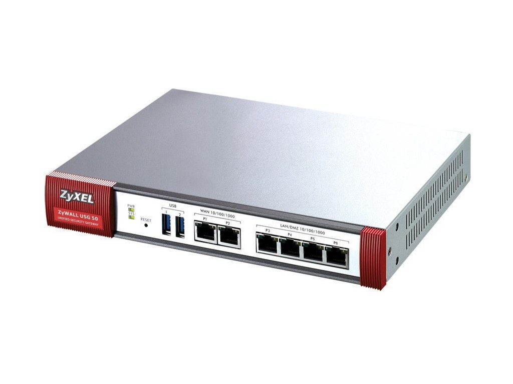 ZyXEL ZyWALL USG 50 Security Firewall, 6xGLAN (4xLAN/WLAN/DMZ, 2xWAN), 2x USB, 5x IPSec VPN, 1xSSL
