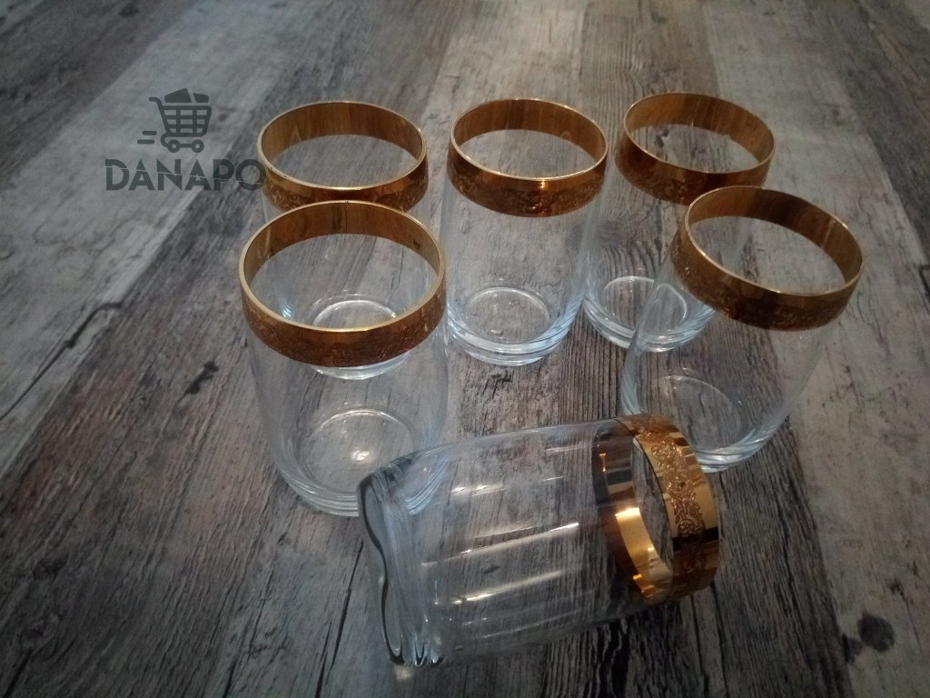 Zlacené sklenice na likér likérovka sada 6 kusů křišťál Bohemia