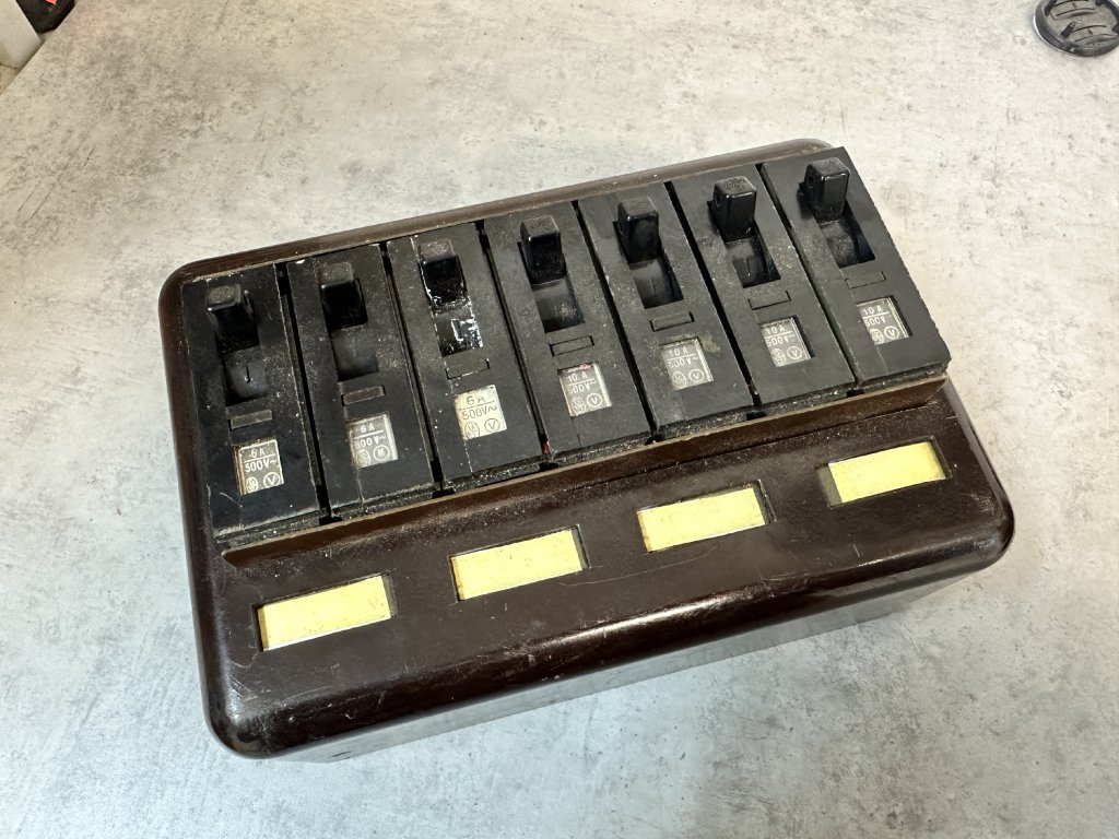 - Pouzdro na 7 ks jednopól. bakelitových jističů černých