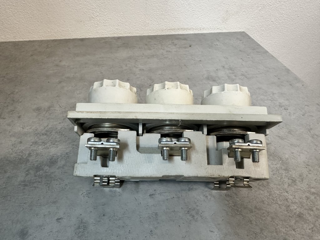 trojitý keramický pojistkový spodek E 33 – D III určený pro montáž na DIN lištu. Slouží k osazení tří pojistkových vložek E33 DIII a pojistkových hlavic E33 DIII.