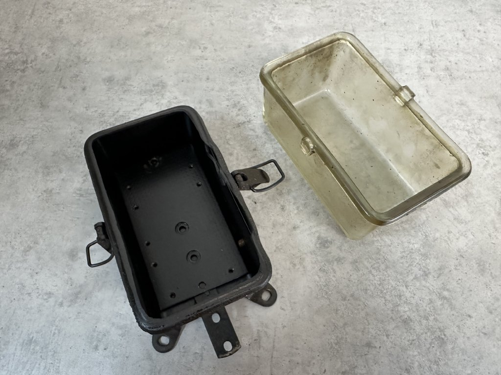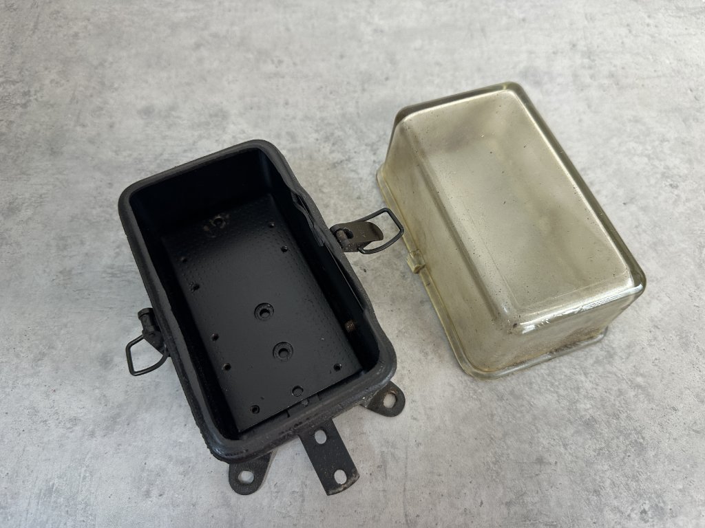 Stará kovová / skleněná nástěnná elektro krabice