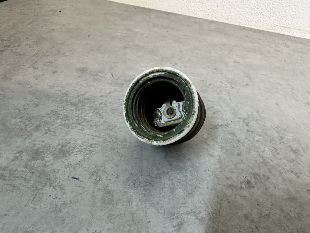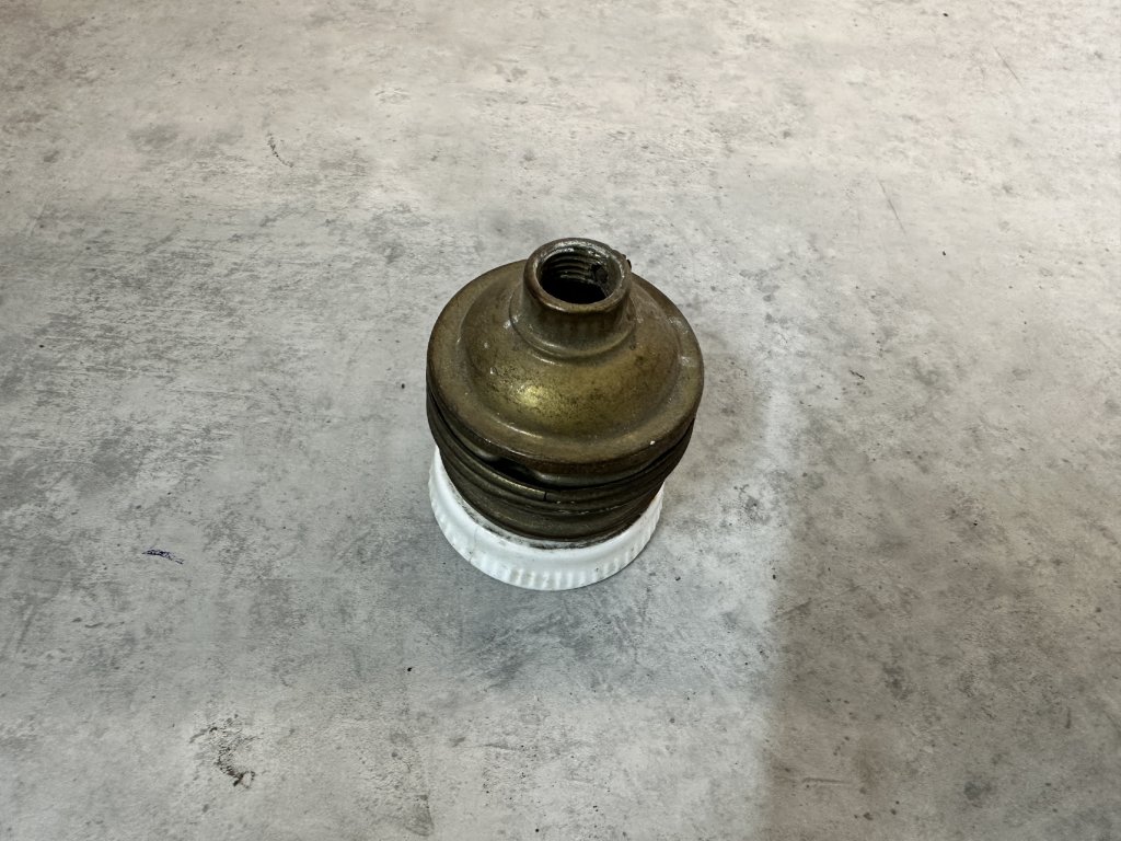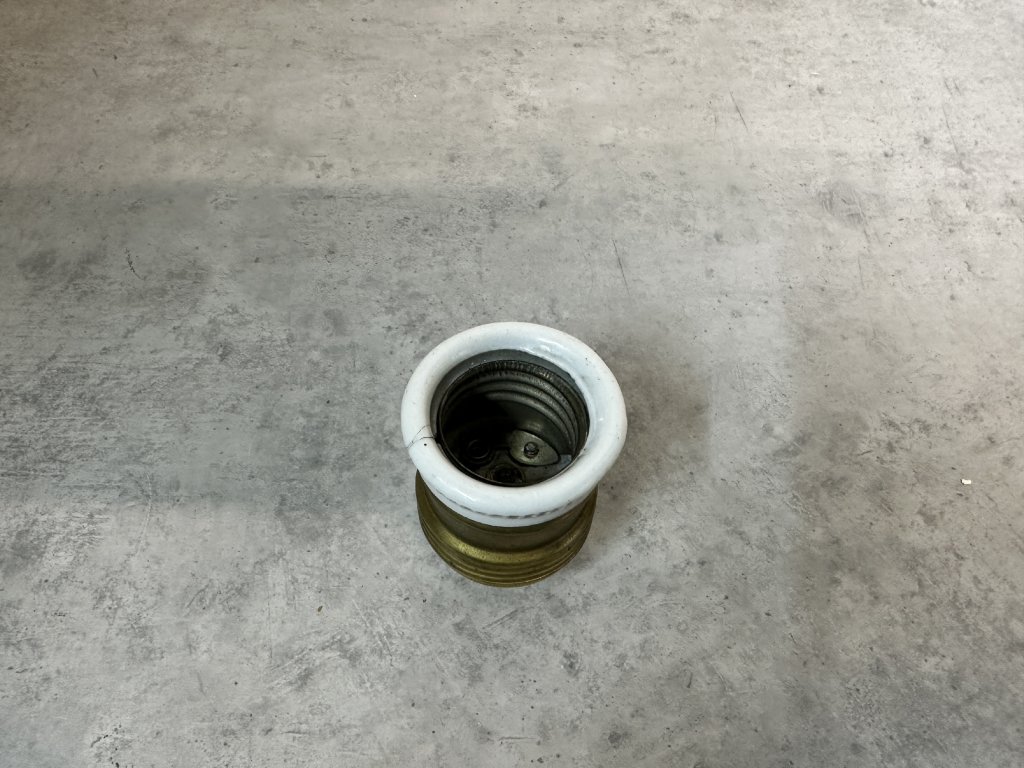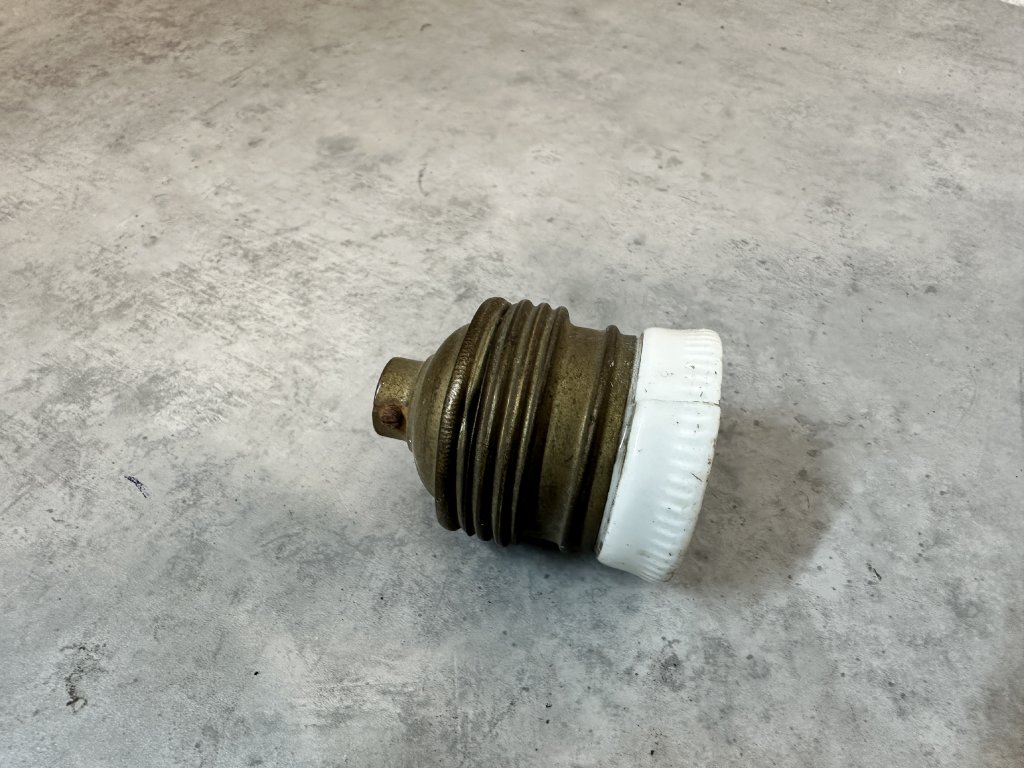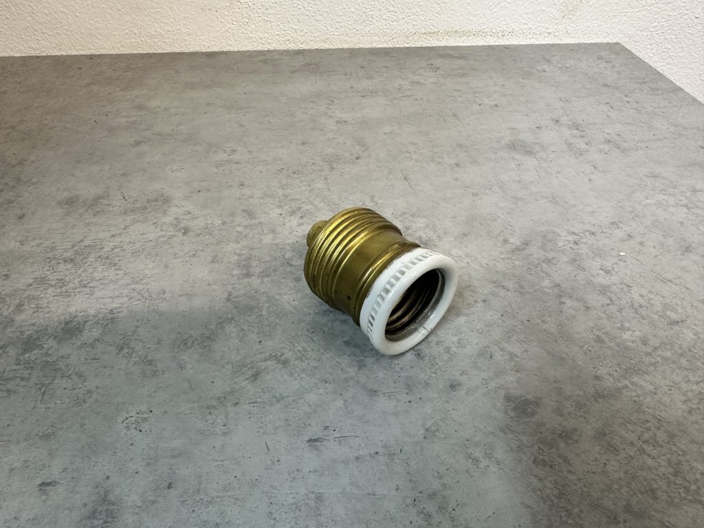 Staré mosazné keramické objímky E27; pouzdro krytka